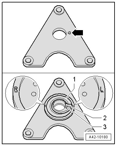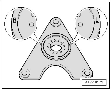 - Insert the new plate with the threaded holes supplied with the (VAS 6274/10) into the plate so that the "R" and "L" are horizontal.