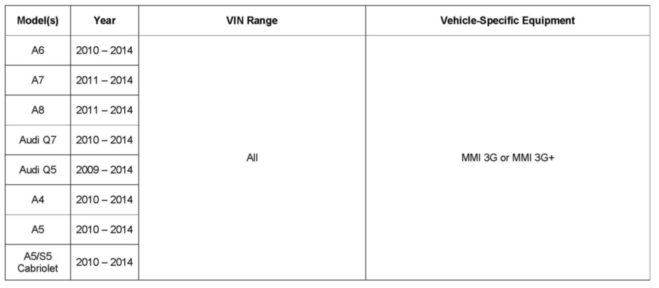 ^ This Technical Service Bulletin also provides instructions for updating the navigation database. Follow the same instructions for MMI software update and refer to the Navigation database update attachment.