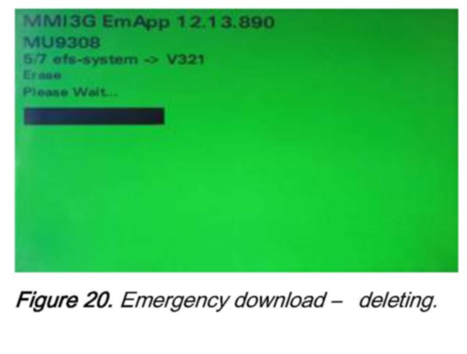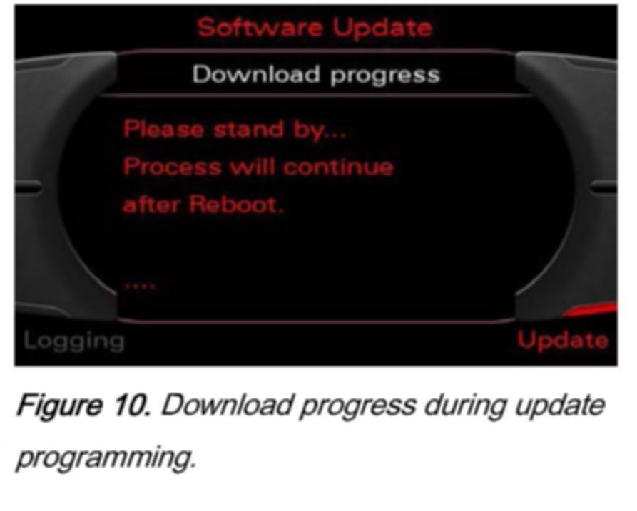 It may be necessary to reboot the system during the update programming session. This is carried out automatically and does not require the user to take action. Once the system has rebooted, updating is continued and the "Download progress" screen is displayed. The MMI screen retracts on vehicles equipped with folding display units.