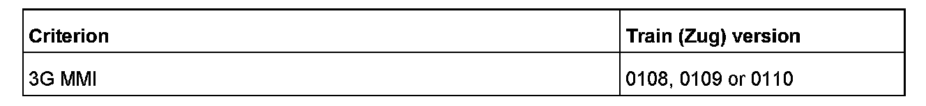 4. The train (Zug) versions listed in the table below must be updated.