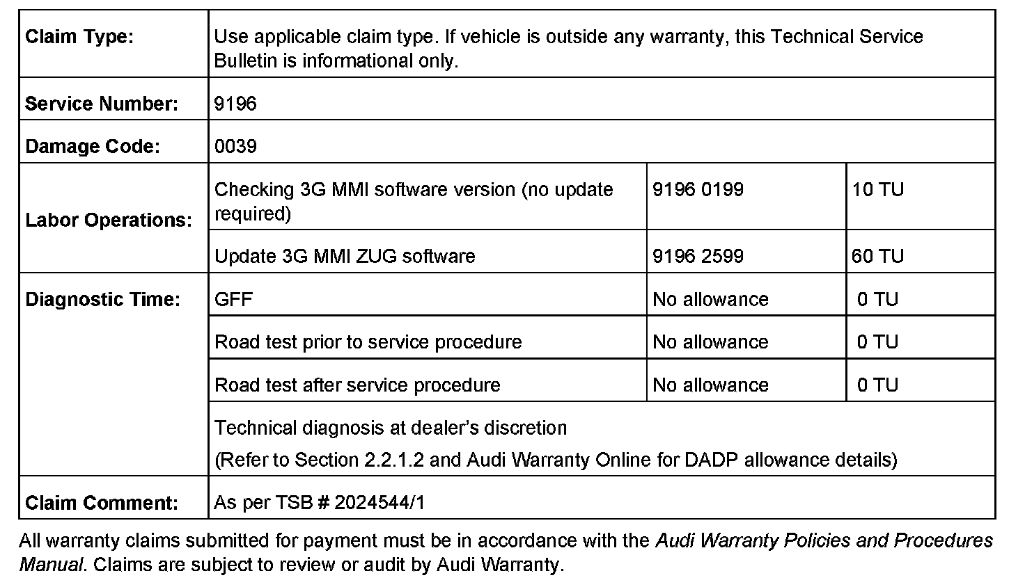 If condition 1 occurs, continue with diagnosis. If necessary, check the 3G MMI software level and if necessary update the software by following the instructions below.