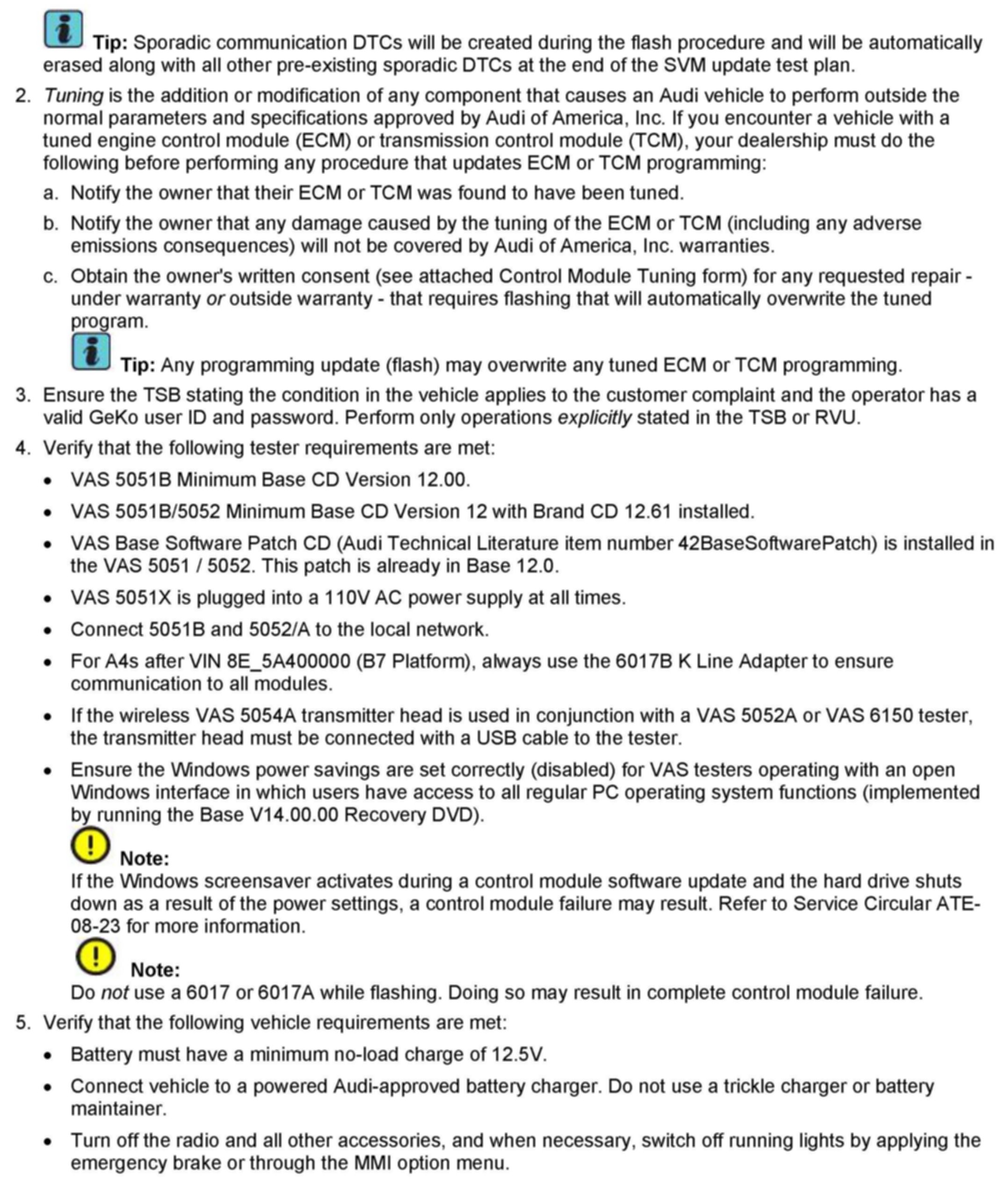 Tip: No control unit is flashed as part of the feedback documentation to the SVM. Do not perform any updates of control units. Do not replace any control units.