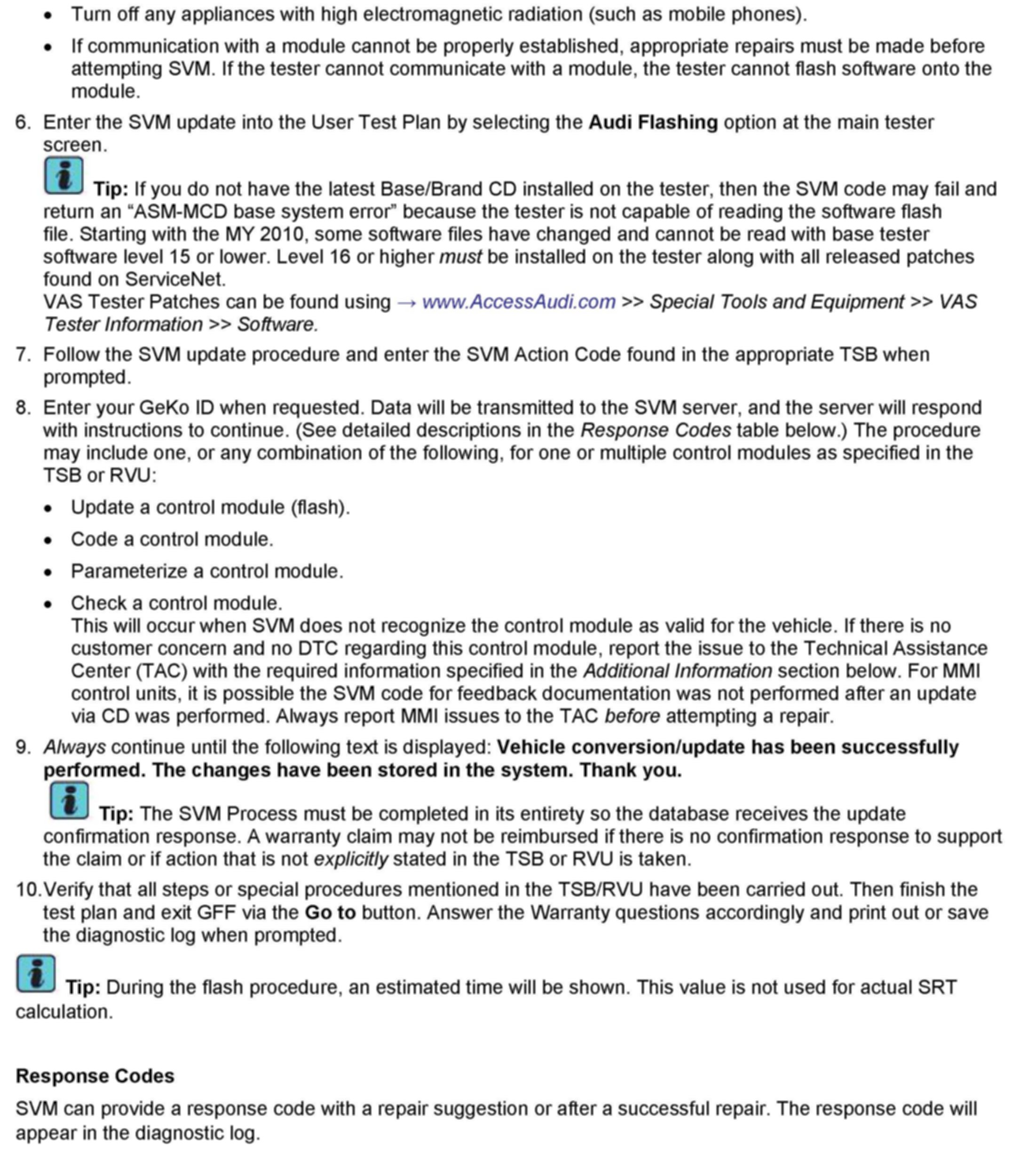 Attachment - TSB 2011732 00 Software Version Management (SVM), operating instructions.