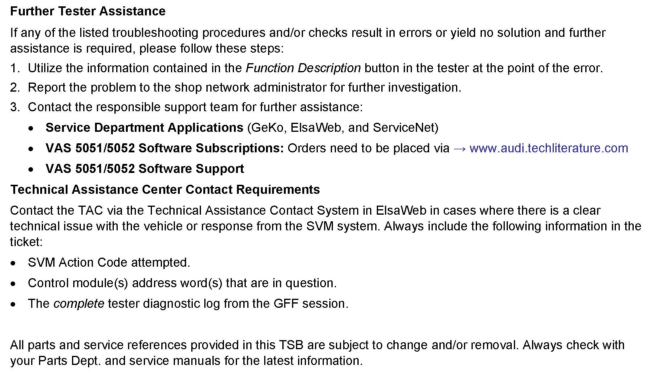 All part and service references provided in this TSB are subject to change and/or removal. Always check with your Parts Dept. and service manuals for the latest information.