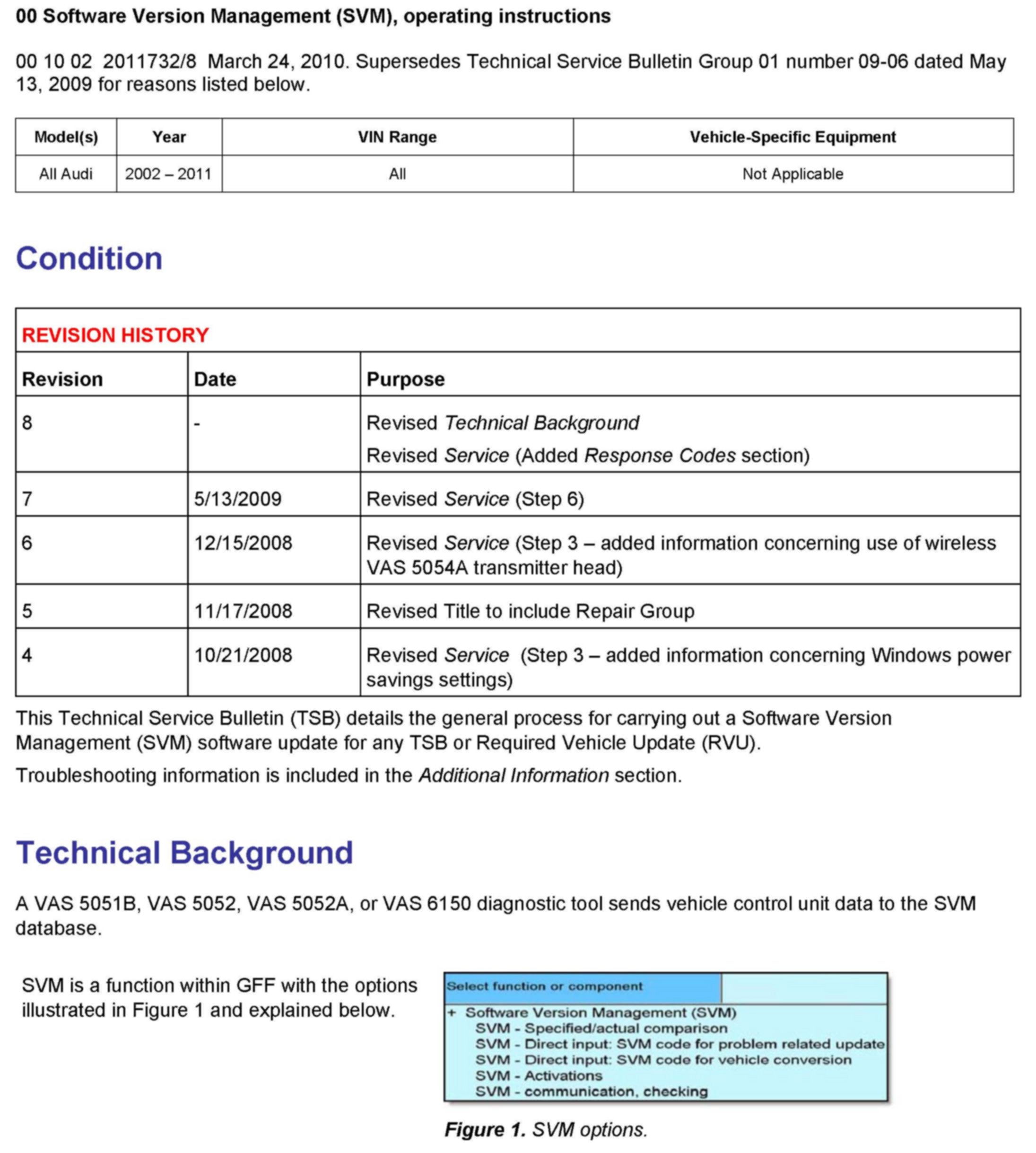 Attachment - TSB 2011732 00 Software Version Management (SVM), operating instructions.