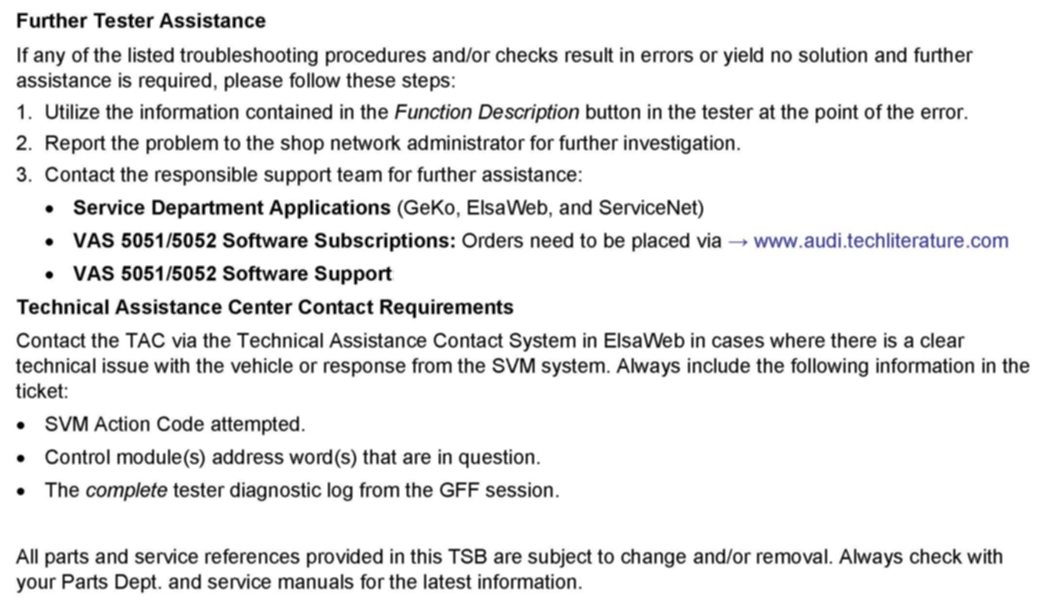 All part and service references provided in this TSB are subject to change and/or removal. Always check with your Parts Dept. and service manuals for the latest information.