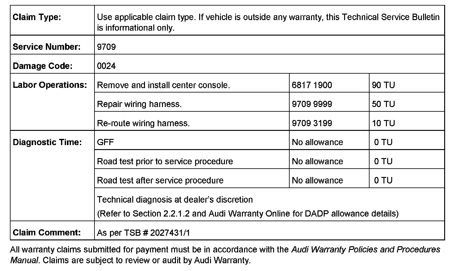All parts and service references provided in this TSB are subject to change and/or removal. Always check with your Parts Department and service manuals for the latest information.