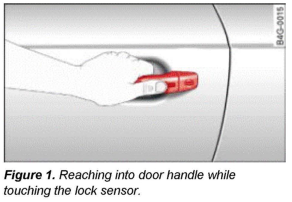 2. If the customer reaches into the door handle while touching the lock sensor to lock the vehicle it will not be locked. This is because the unlocking command from the sensor is sent at the same time and has a higher priority.
