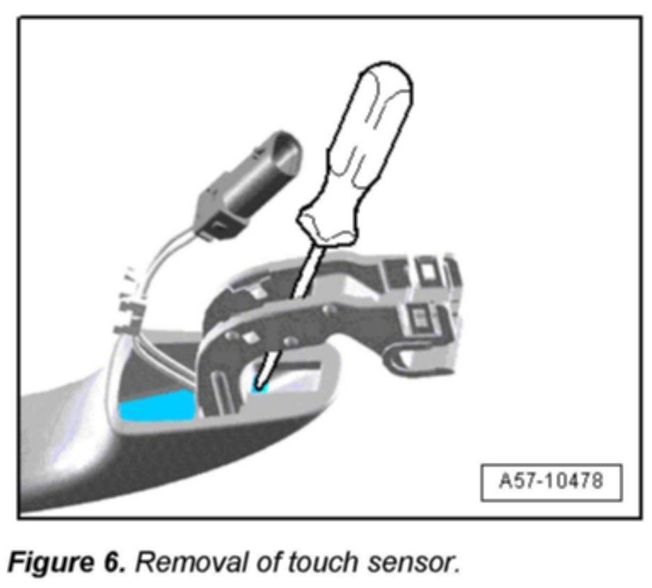 6. Remove the touch sensors from the door handles to check the part number. During the removal make sure that the sensor is pried out using a screwdriver according to the repair manual.
