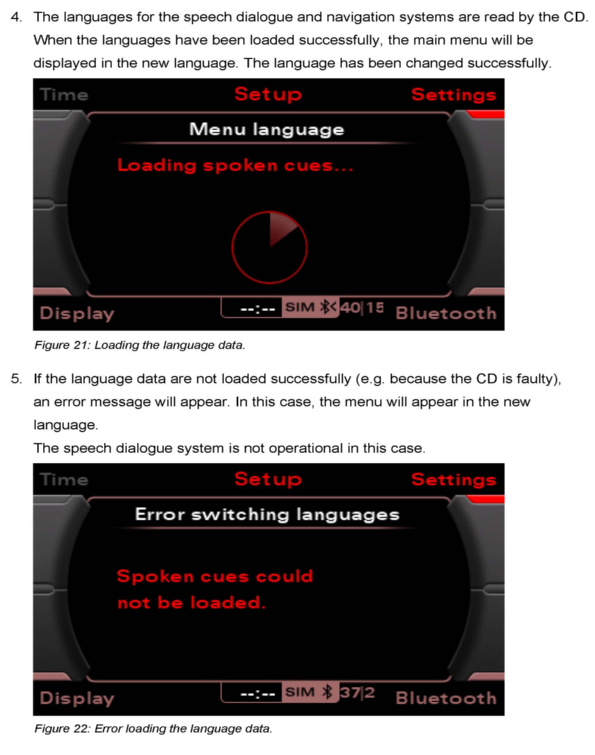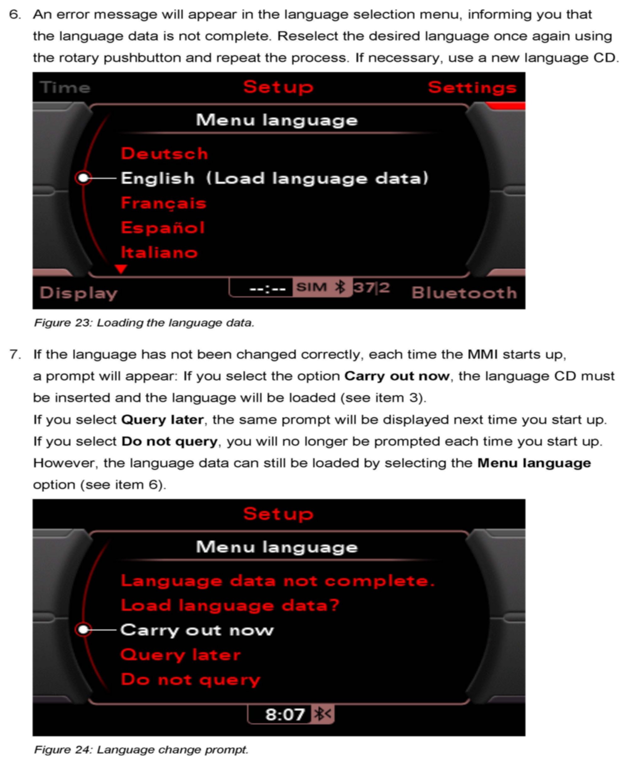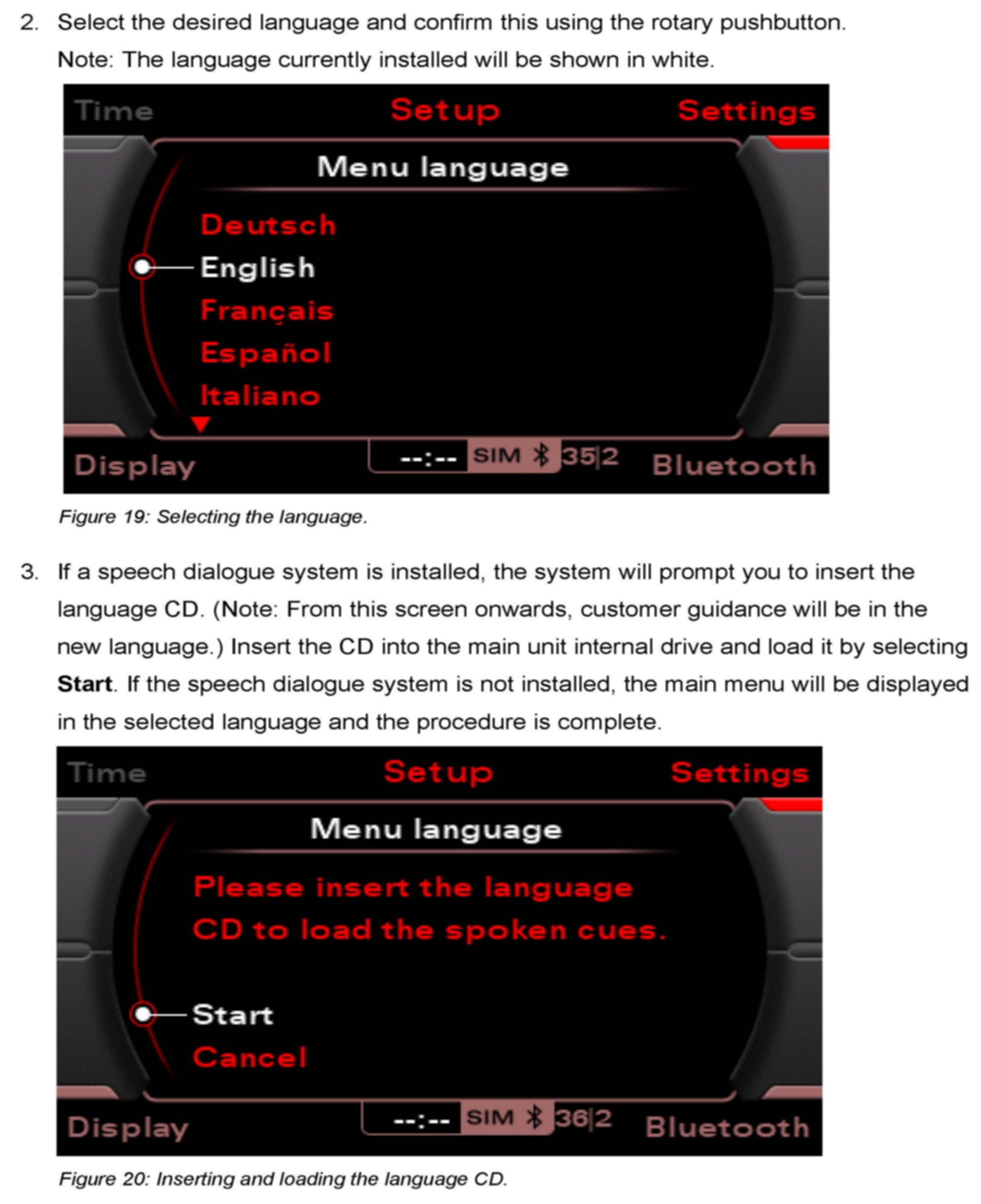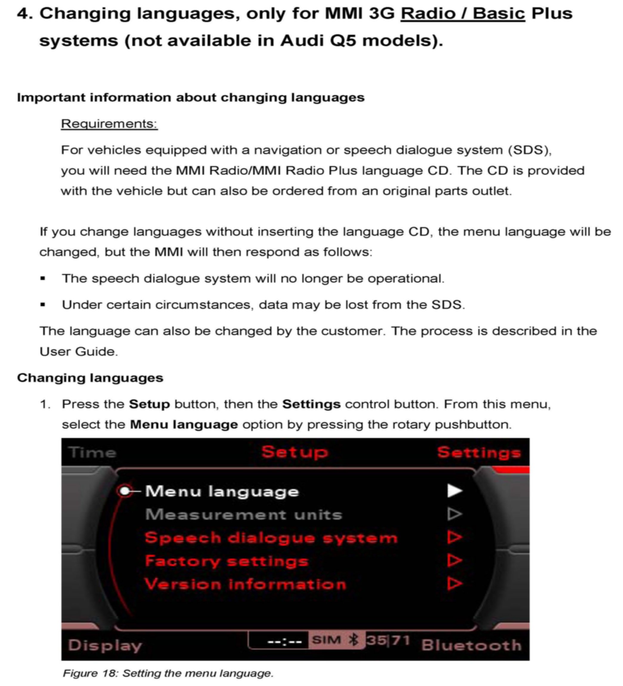 4. Changing Languages, only for MMI 3G Radio/Basic Plus systems (not available in Audi Q5 models).
