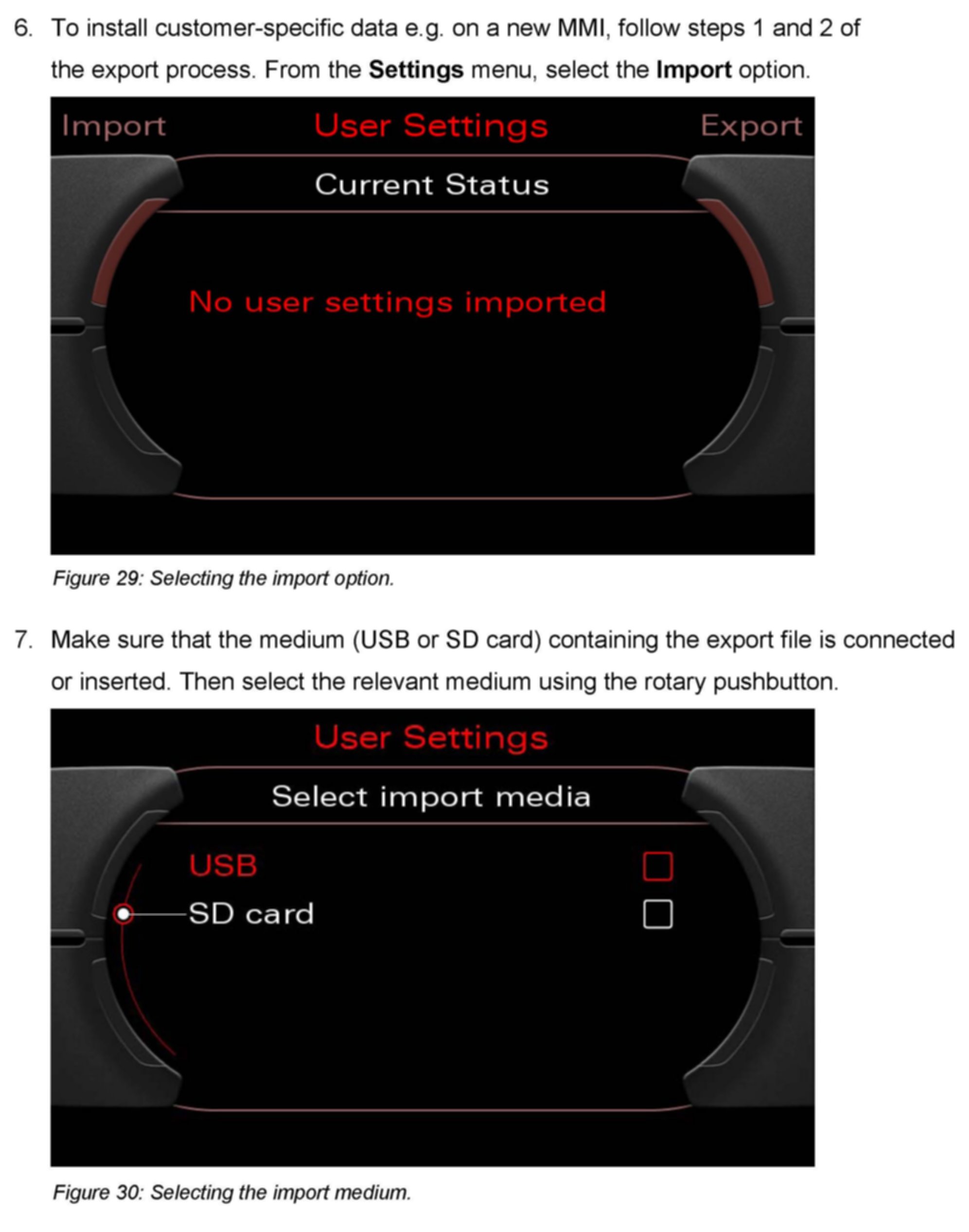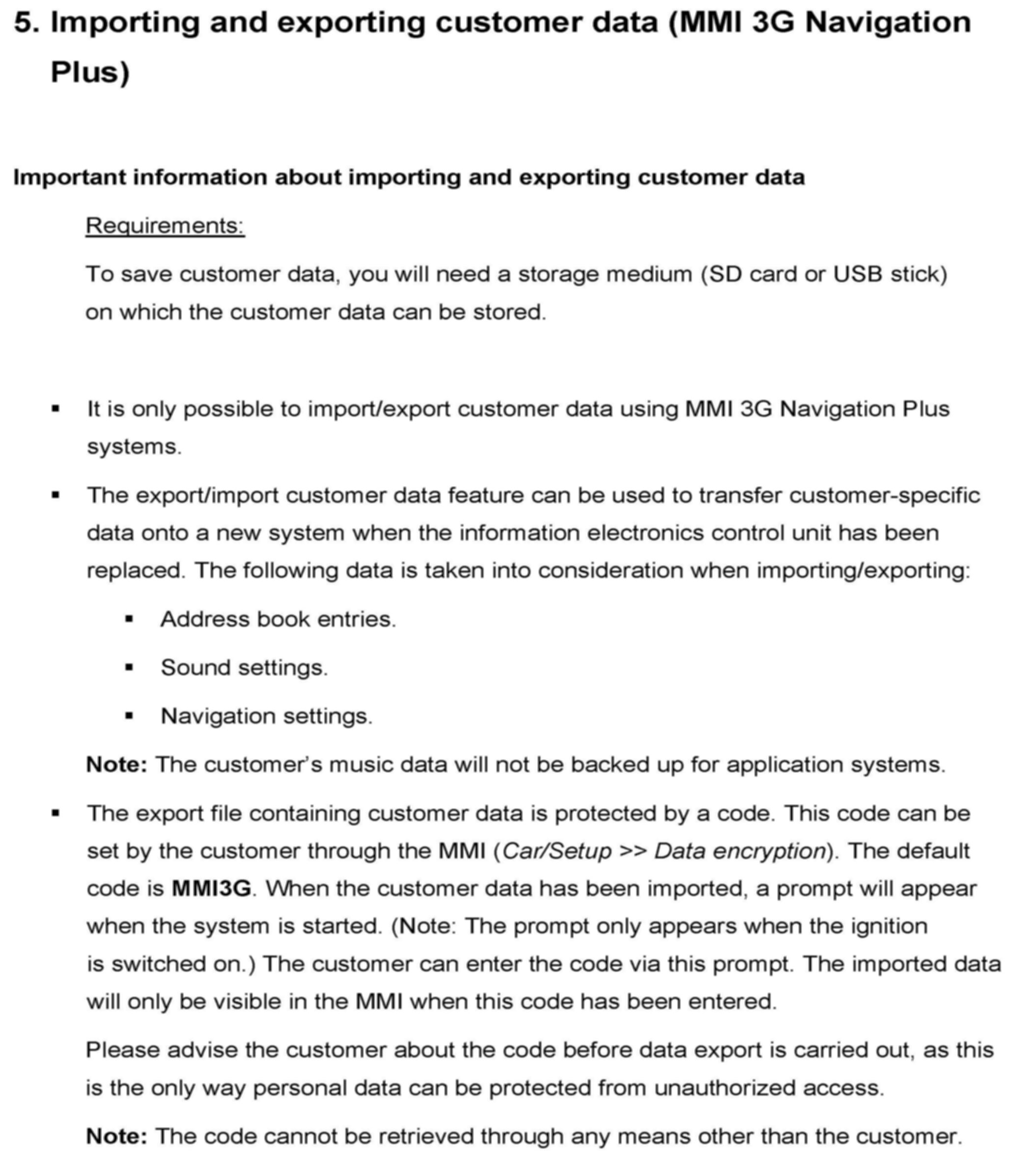 5. Importing and exporting customer data (MMI 3G Navigation Plus)