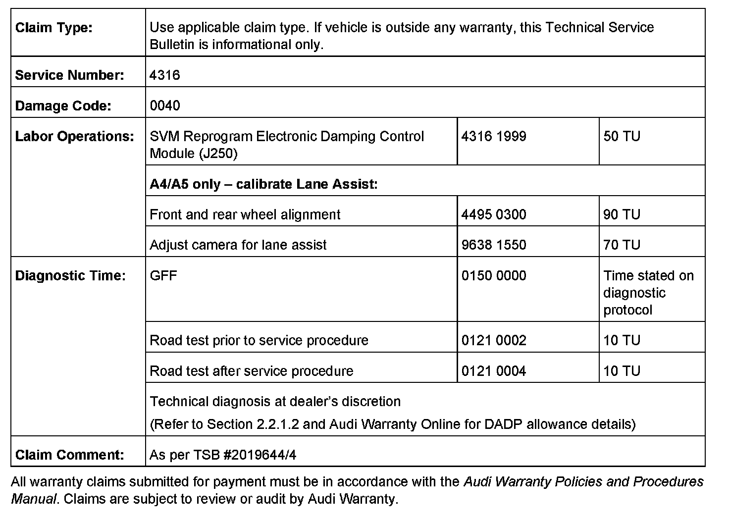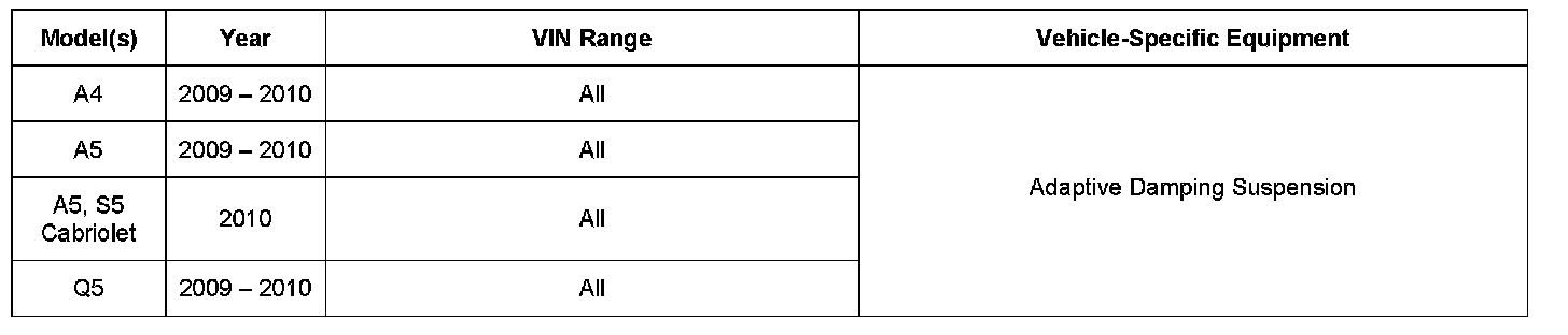 Tip: Replacing the electronic damping control module (J250) or the affected shock absorber(s) does not address the condition. Any parts replaced under warranty may be subject to review and possible debit of the claim(s).