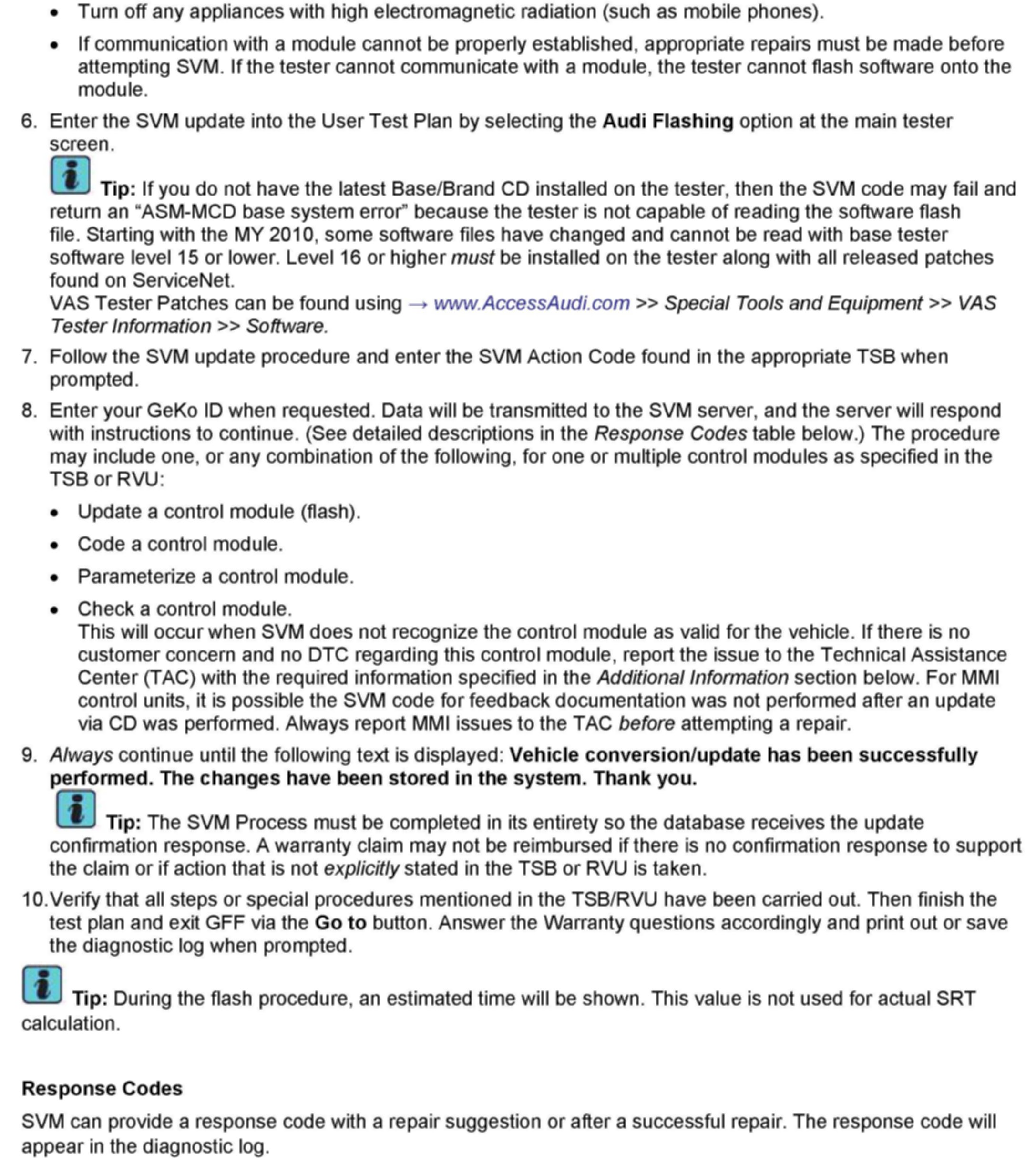2. Follow all instructions in the attached TSB 2011732 00 Software Version Management (SVM), operating instructions.