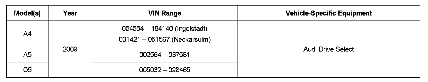 ^ For select A4, A5, and Q5 VINs: Suspension control (address word 14) software update: Optimization of initialization.