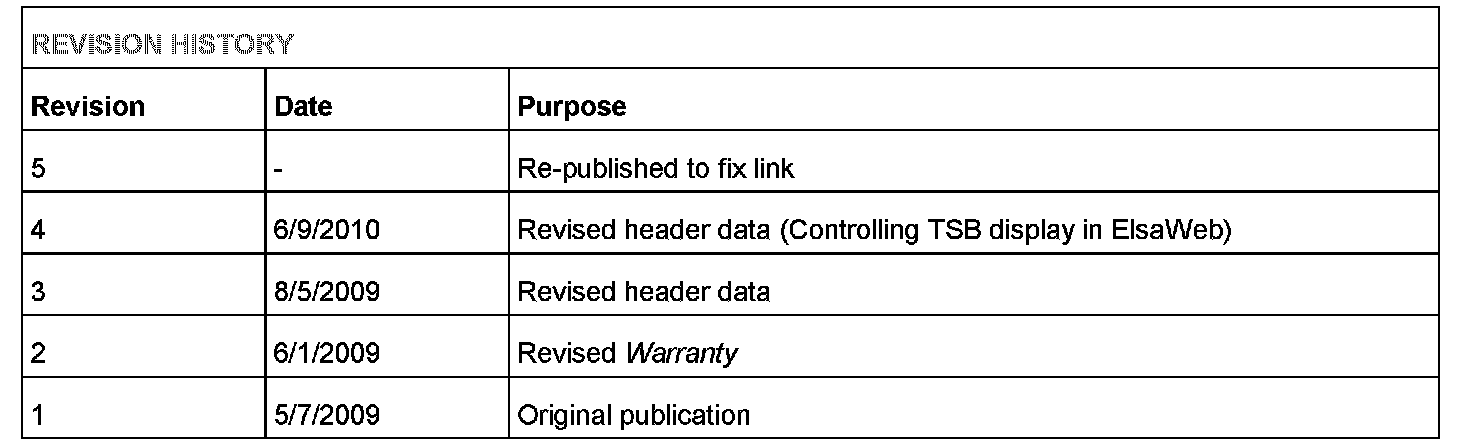 All parts and service references provided in this TSB are subject to change and/or removal. Always check with your Parts Department and service manuals for the latest information.