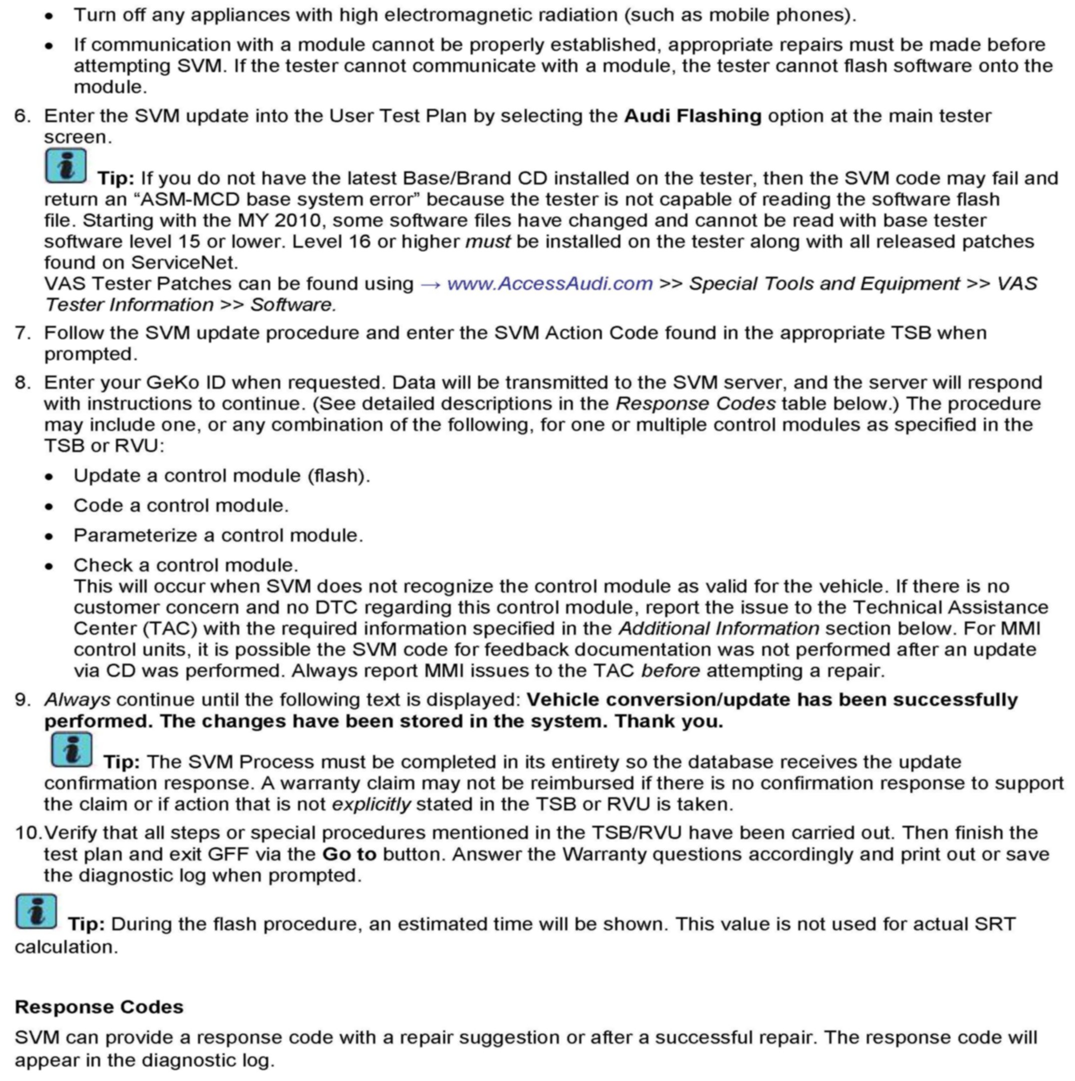 Tip: The Base 15 CD update adds the "Audi Flashing" option at the main tester screen. Using this function can reduce the time necessary to perform the software update by allowing a quick access to the Software Version Management (SVM) selections.