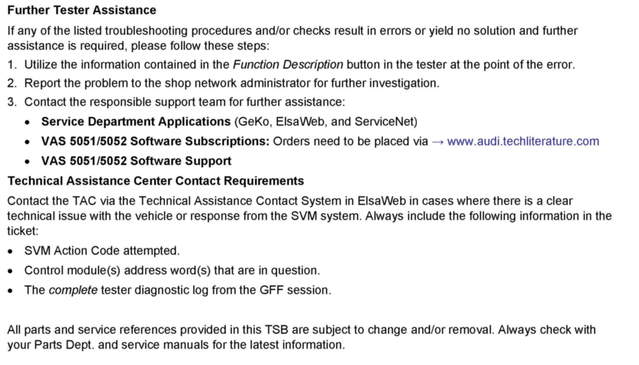 ^ Procedure must be performed within the allotted time frame stated in this Technical Service Bulletin.