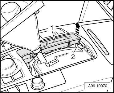- Release retaining spring - 2 - and remove Selector Lever Transmission Range Position Display (Y26) - item 1 - - arrow -.