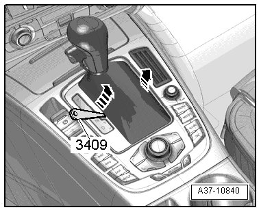- Carefully pry the selector lever boot out at the side using a (3409) or a small screwdriver - arrows -.