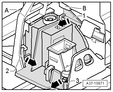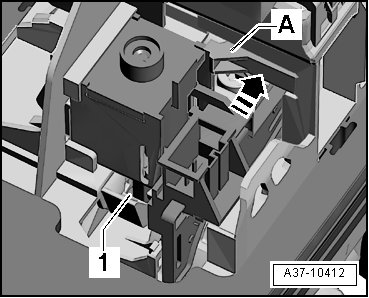 - Secure the Shift Lock Solenoid (N110) on the retaining hooks - A -.