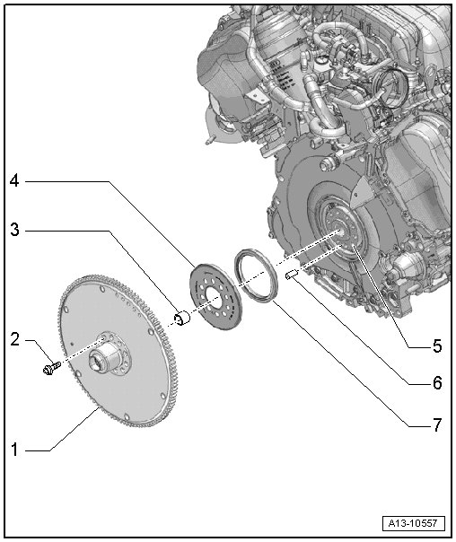 • To perform assembly work, secure the engine using the bracket for V6 FSI engine, Audi A6 (VAS 6095/1-5) on the engine and transmission holder (VAS 6095). Refer to => [ Engine, Securing to Engine and Transmission Holder ] Procedures.