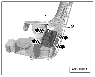 - Remove the window regulator switch - 1 - from the mount - 2 -.