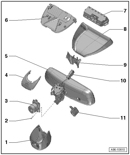 • If the automatic high beam control module is faulty, it is not possible to replace the light recognition sensor. The whole rearview mirror must be replaced.