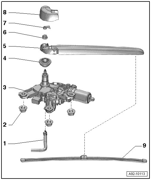 • Removing and installing, refer to => [ Rear Window Wiper Motor (V12) ] Service and Repair