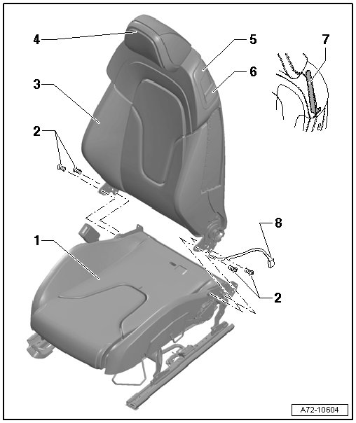 • Removing and Installing, refer to => [ Headrests Assembly Overview ] Headrests Assembly Overview