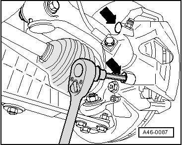 - Make sure that groove in brake hose banjo fitting is inserted in securing tab - arrow -.