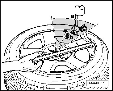 - Position mounting head near valve so that so that tire iron can be put on approximately 30° - b - next to tire valve.