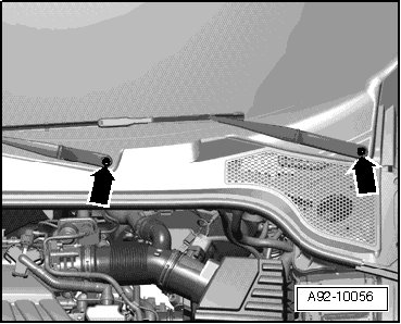 - Loosen the wiper arm nuts - arrows - several turns.