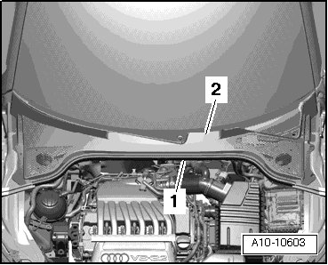 - Remove the rubber seal - 1 - and the plenum chamber cover - 2 -.