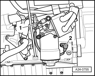 - Disconnect the Engine Speed (RPM) Sensor (G28) electrical harness connector - 1 -.