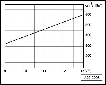 - Compare quantity of fuel delivered with minimum delivery rate in diagram (cm3/15s).