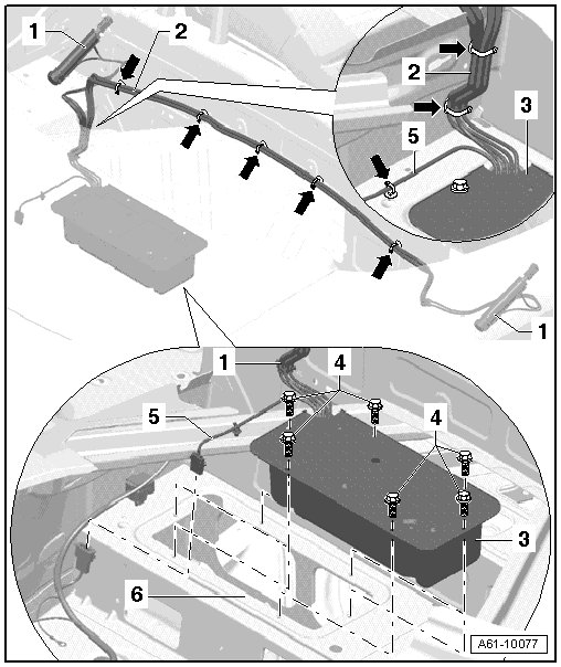 • Unclip hydraulic line to body - arrows -.