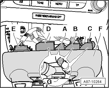 - Release connectors - D -, - A - through - C - by pressing retaining tabs - G - and remove them.