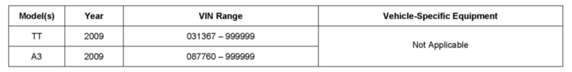 ^ Instrument clusters with software version 0860 (A3) and 0360 (TT) are affected.