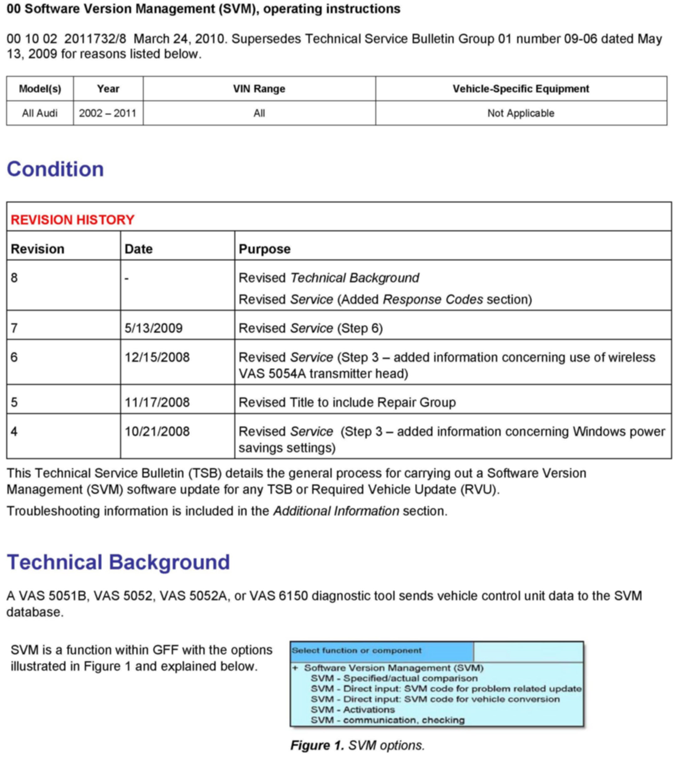^ TSB 2011732 00 Software Version Management (SVM), operating instructions.