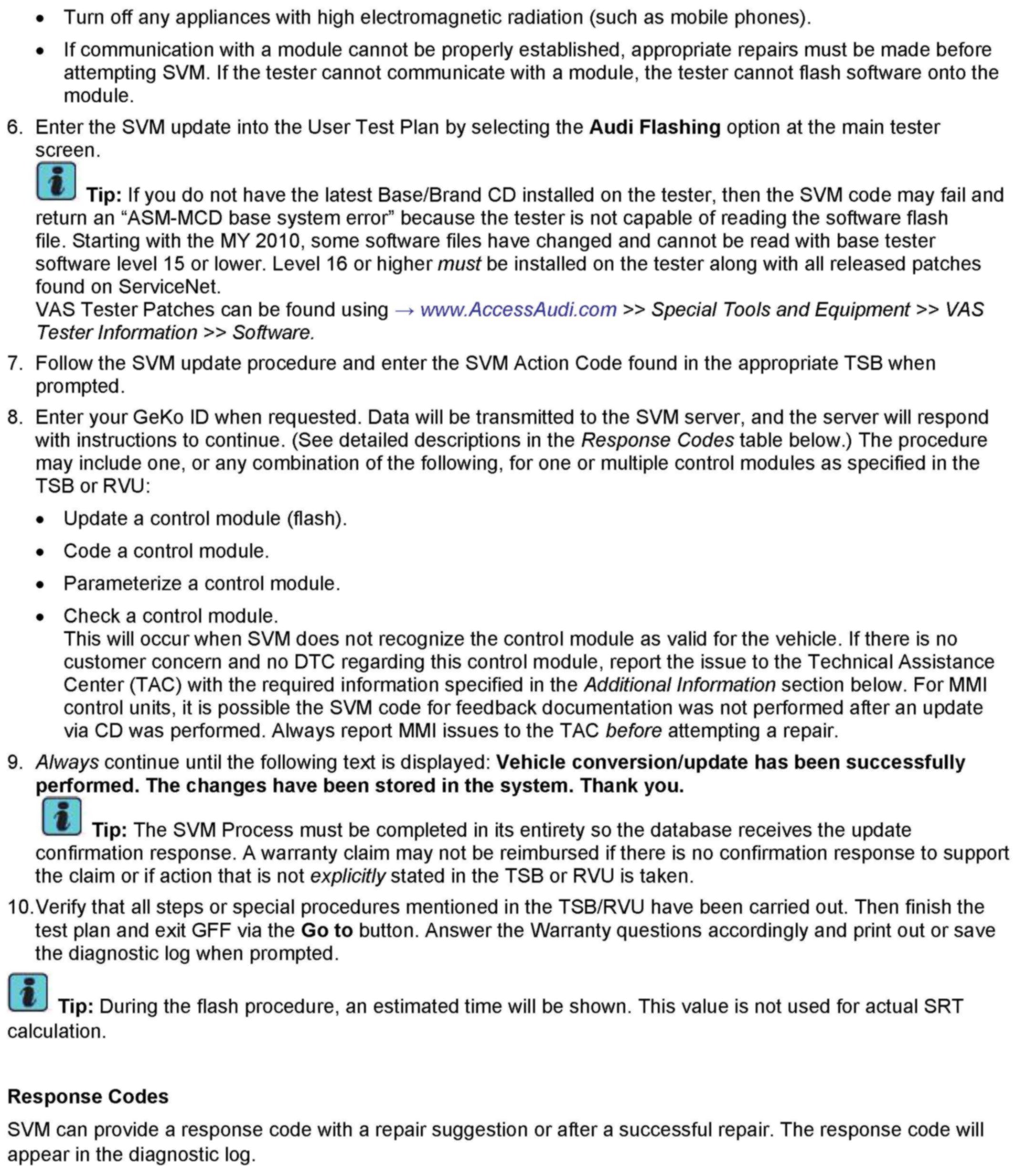 1. Follow all instructions in the attached TSB 2011732 00 Software Version Management (SVM), operating instructions.
