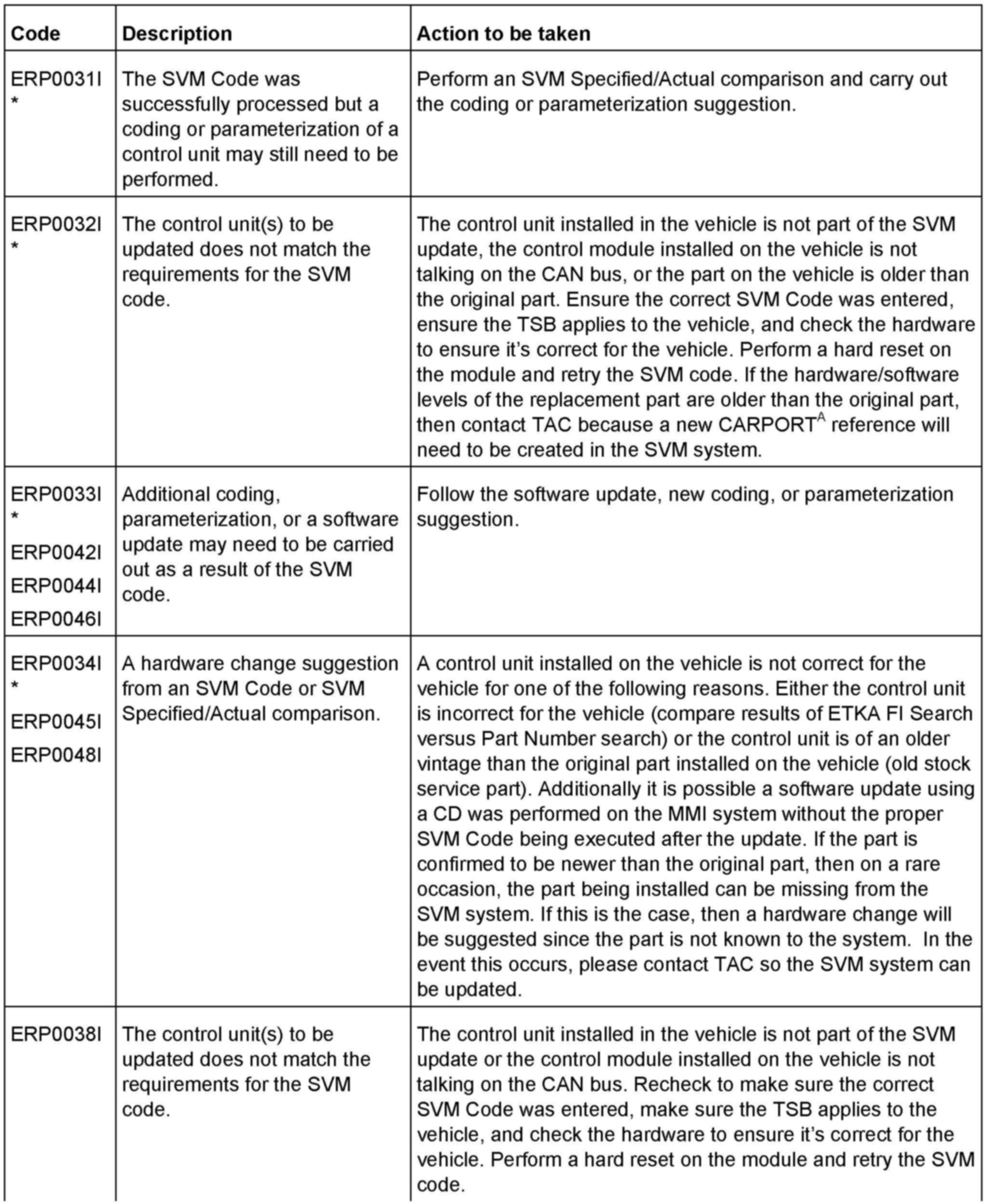 2. Update the instrument cluster (J285) using the SVM action code as listed in the table above if necessary.