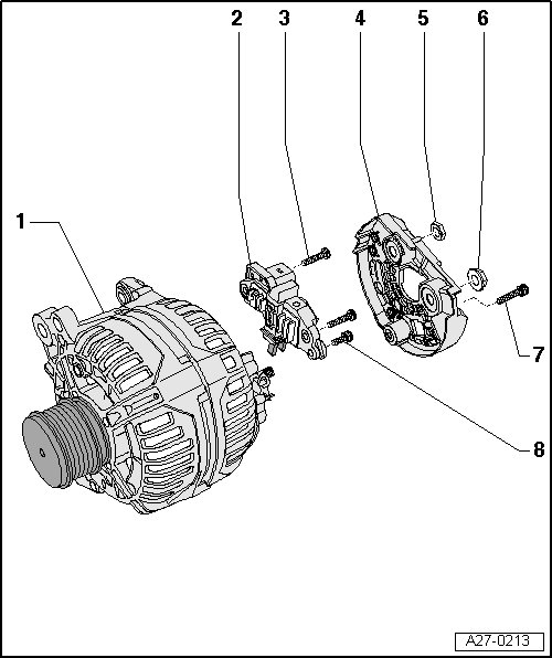 • Carbon brushes, checking, refer to=> [ Carbon Brush, Checking, Bosch Generators from 2001 ] Carbon Brush, Checking, Bosch Generators From 2001.