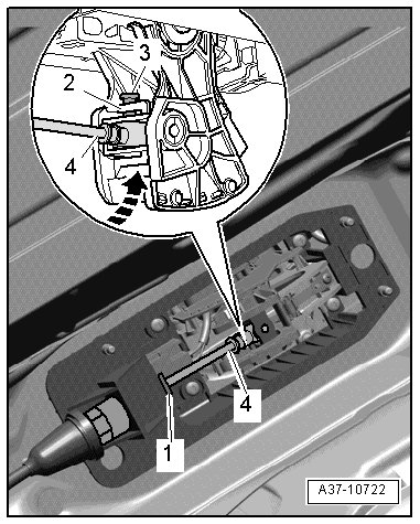 - Insert end of selector lever cable - 4 - into selector lever joint.