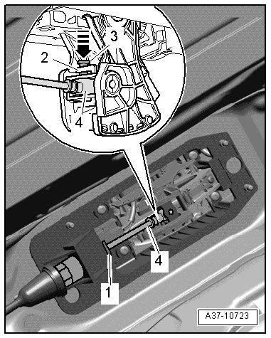 - Remove selector lever cable securing plate - 1 - downward.