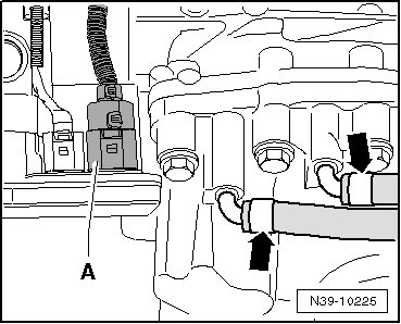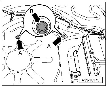 • Seal the holes - arrows A - with plugs (7L0 899 182).