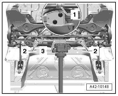 - Install crossmember - 3 - and tighten bolts - 2 -.