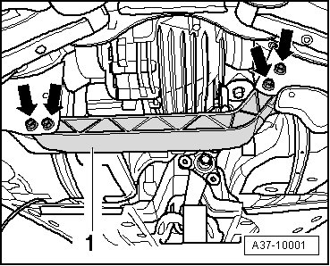 - Install the crossmember - 1 - - arrows -, if equipped.