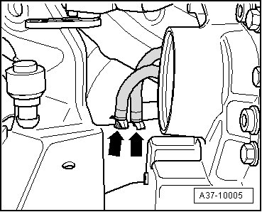 - Install both of the transmission bleeder hoses - arrows - on the subframe.