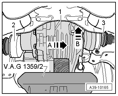 - Secure final drive against falling down with strap - B - from the (V.A.G 1359/2).