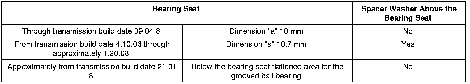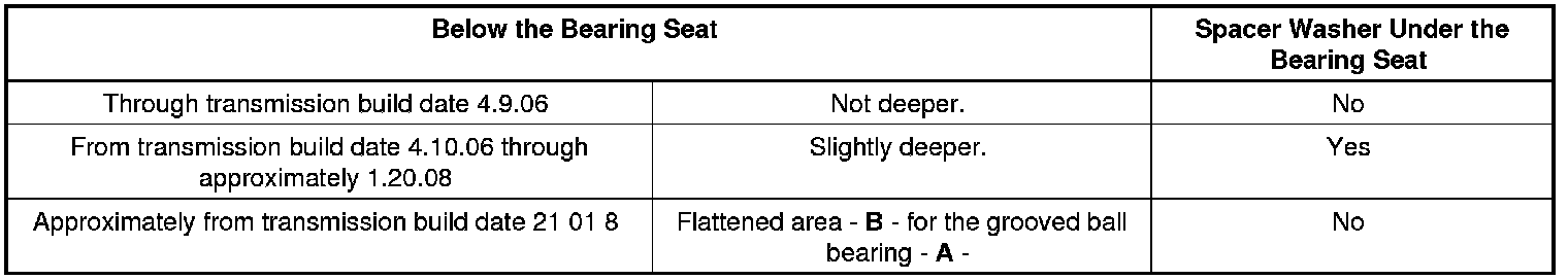 Flattened areas on the grooved ball bearing - A - and bearing seat - B - in the transmission housing approximately from transmission build date 2.21.08.